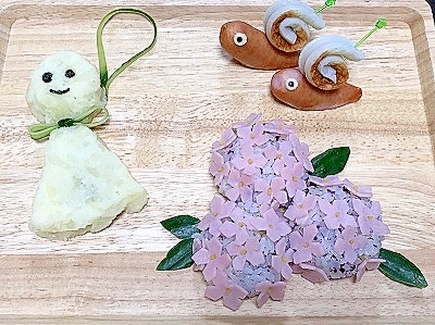 紫陽花 てるてる坊主 かたつむりの梅雨プレート レシピ 作り方 By 幸せパンダ 楽天レシピ