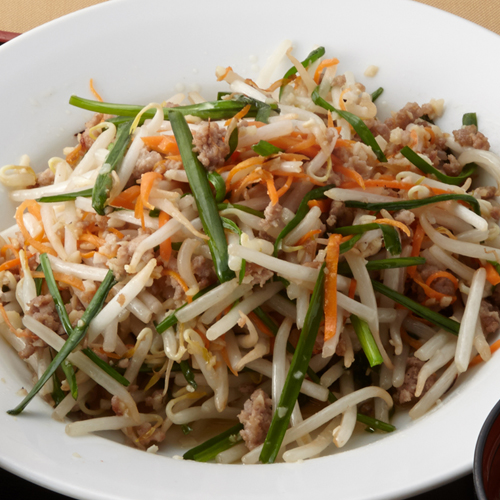 子大豆もやし芽ぐみの香味そぼろ炒め サラダコスモの おいしい発芽野菜レシピ